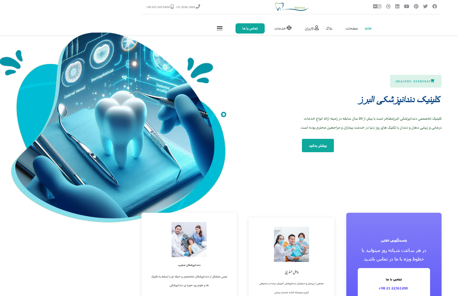 کلینیک دندانپزشکی البرز Super User صفحه اصلی 05 اسفند 1404 بازدید: 9 Rating: ( 1 Rating ) امتیاز کاربران لطفا رای دهید رای 1 رای 2 رای 3 رای 4 رای 5 طراحی وبرنامه نویسی سایت کلینیک دندانپزشکی البرز Facebook Twitter قبلی بعدی